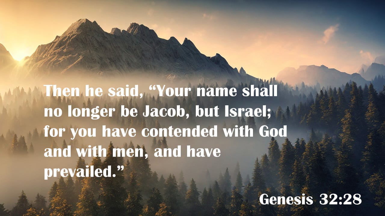 So, neither Abraham or Jacob were changed by their new names. So, if God changing your name doesn’t represent a change in you, what does it signify? With Abraham, we can say his new name signified the promises of God. But Jacob’s name change did not have such an obvious purpose. It had nothing to do with what was promised to him or his forefathers. God gave him the name Israel because he wrestled with Him. He said, “Your name shall no longer be Jacob, but Israel, because you have contended [wrestled] with God and with men and have prevailed” (Gen 32:28 NASB, italics added).